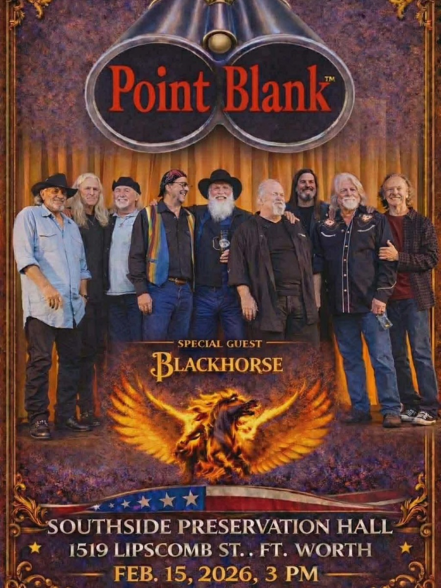 Hailing from Irving, Texas, Point Blank exploded onto the scene in 1974 as a Southern rock powerhouse. Through lineup changes and epic rides, their mission now is crystal clear: to honor every chapter of their incredible legacy by performing the music that defined those lineups. Join them as they fire up those fond memories of good times shared, killer riffs, and the unbreakable bond of the Point Blank family — inspiring new fans to jump in and keep the fire burning.