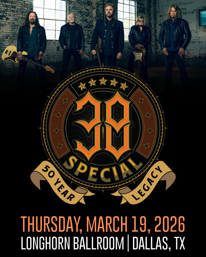 Rock legends 38 Special are bringing their high-octane Southern rock to the iconic Longhorn Ballroom in Dallas! Celebrating 50 years of hits and over 20 million albums sold, the band behind classics like “Hold On Loosely,” “Caught Up In You,” “If I’d Been The One,” “Second Chance,” and “Rockin’ Into the Night” returns with their powerful live show. Fresh off their first new studio album in over 20 years — Milestone — expect snarling guitars, anthemic melodies, and the explosive energy that has made them one of the greatest live rock bands of all time.