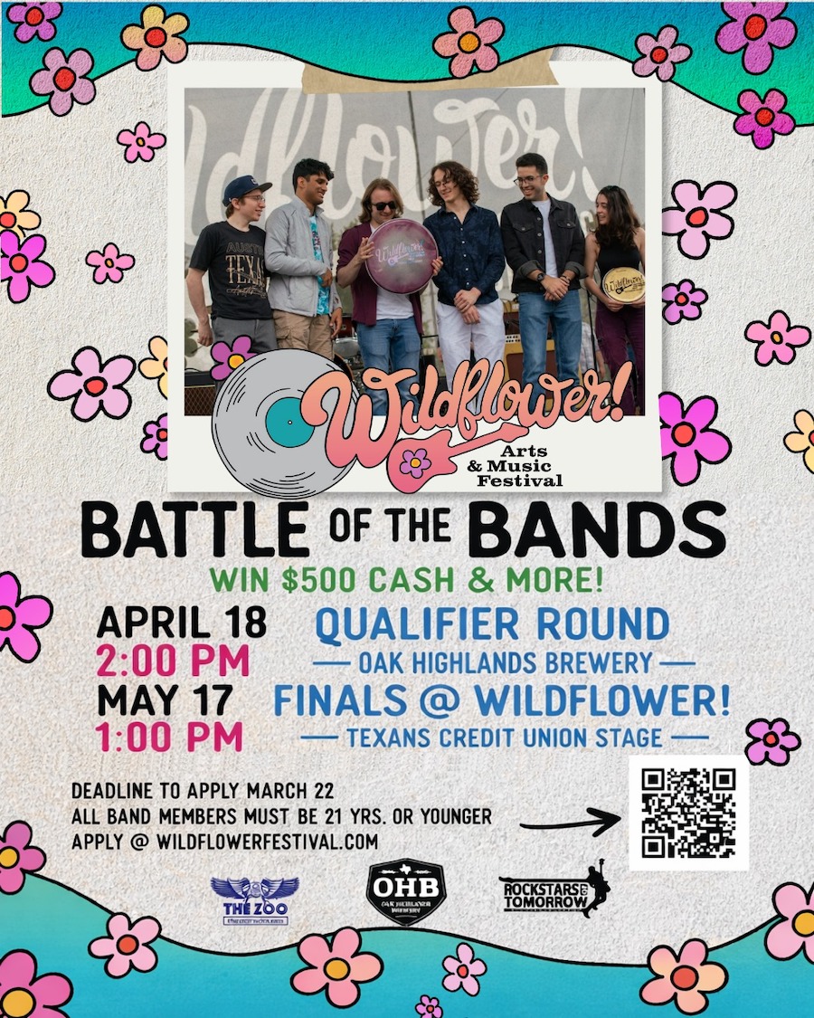 Get ready to rock Richardson! The 2026 Wildflower! Arts & Music Festival Battle of the Bands, presented by The Zoo, is back and bigger than ever. Young musicians aged 21 and under (bands of 3+ members) have until March 22 to apply for a shot at the qualifier round on Sunday, April 18 at 2 p.m. at Oak Highlands Brewery.